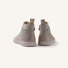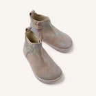 Botines Respetuosos Gioseppo Cokato Pink 💖✨. Un diseño encantador en piel serraje con acabado brillante, pensado para acompañar los pasos con libertad y comodidad. Su detalle de corazón brillante en el lateral y el elástico decorativo aportan un toque único y divertido, mientras que la cremallera interior facilita un calce rápido y práctico.