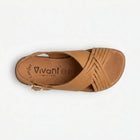 Su tono marrón aporta luz, suavidad y ese aire limpio que combina con todo. Las tiras cruzadas abrazan el pie con delicadeza, mientras la hebilla metálica permite un ajuste seguro y cómodo. Tan naturales que te invitan a moverte sin pensar en ellas.