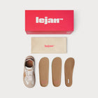 - Plantilla Sensitive: grosor de 3 mm, forrada en lino con la huella icónica de Lejan™. Sensación muy cercana al suelo.