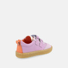 Confeccionadas en piel natural en tono lila con detalles mandarina, tanto por dentro como por fuera, abrazan el pie con suavidad y permiten un ajuste cómodo en cada movimiento. La suela antideslizante y el doble velcro hacen que sean facilísimas de poner… ¡y difíciles de quitar de lo mucho que les gustan!